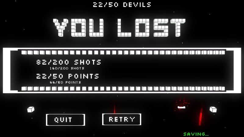 When playing, you should expect to die… a lot. This game boasts about its high difficulty. Beating the game requires many attempts at trial-and-error to discover the perfect timing and angle you’ll need to reach the goal. I recommend going onto the options and turning on “Auto-Retry” right away to avoid having to hear the “You Lose” theme repeatedly. You’re also going to need a lot of luck. As levels become more complex, strategies become less about the perfect path and more about figuring out what almost works and then brute-forcing your way through the level. Not every level is like this, but the ones that are are not very replay friendly.